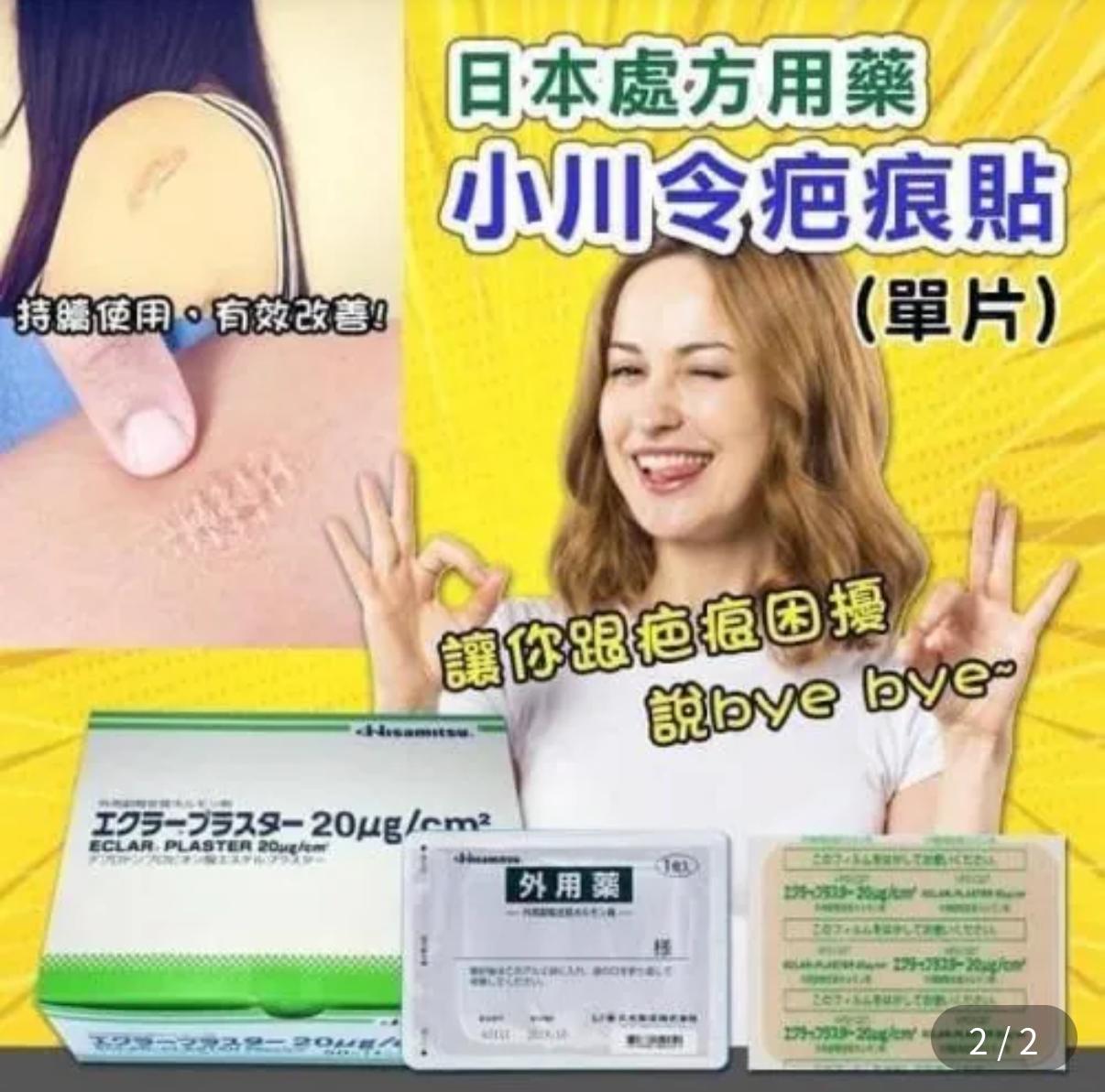 疤痕修復、淡化痕跡 ✔️肥厚性疤痕/蟹足腫救星 ✔️祛除淡化紅印膏 ✔️日本原廠原裝疤痕貼 ✔️黏性佳,超薄有彈性 ✔️可剪裁成適合大小使用 ✔️適合任何疤痕,敏感肌膚適用 來自日本的皮膚科學家〰️ 研發出這款小川令疤痕貼 👉🏻含有類固醇激素成分❗️ 持久使用,破壞疤痕的微循環 阻止過度的疤痕增生 使疤痕變淡、變小〰️ ⭐️主要功效: 蟹足腫、紅色突起增生疤痕 增生性疤痕、剖腹產疤痕 手術性疤痕 ⭕️ 貼片尺寸:7.5*10cm(可自行裁切) 📎使用方法 : 1. 首先洗淨疤痕 2. 剪下適當大小的貼片 3. 將貼片貼在疤痕突起處 4. 貼12或24小時可更換一次 5. 連續使用至突起疤痕平復 ⚠️ 注意事項 ⚠️ 👉🏻貼片可用在全身肌膚,身體及四肢都可以,只有臉部除外喔((臉部請勿使用)) 👉🏻疤痕有傷口時請勿使用❗️ 像細菌、真菌等病毒性感染 例如:擦傷、痔瘡...等及燒燙傷或凍傷超過二級傷度等不適用可能會使患部傷口加劇,延遲癒合 👉🏻這款貼布是有含類固醇的,如果用在臉部會有青光眼或白內障的副作用❗️ 👉🏻兒童、嬰兒、孕婦、哺乳期婦女等請勿使用❗️ 👉🏻老年人的生理機能比較慢,因此請勿大量或長期使用❗️ 👉🏻此貼片不能重複使用,貼片上面有特殊成份,貼上後每12或24小時就要更換新的貼片❗️