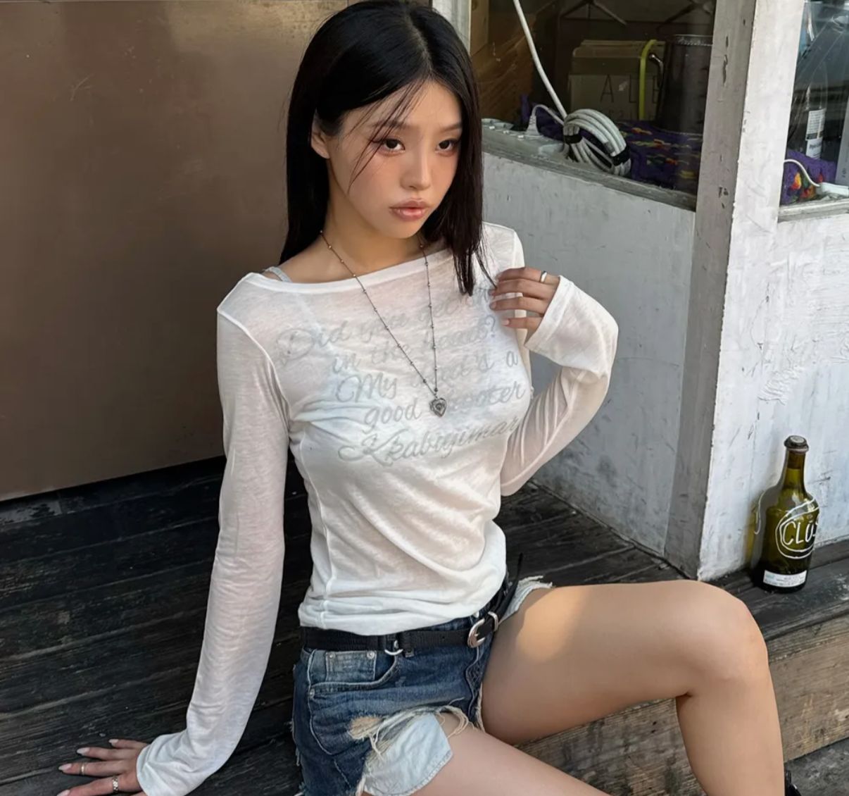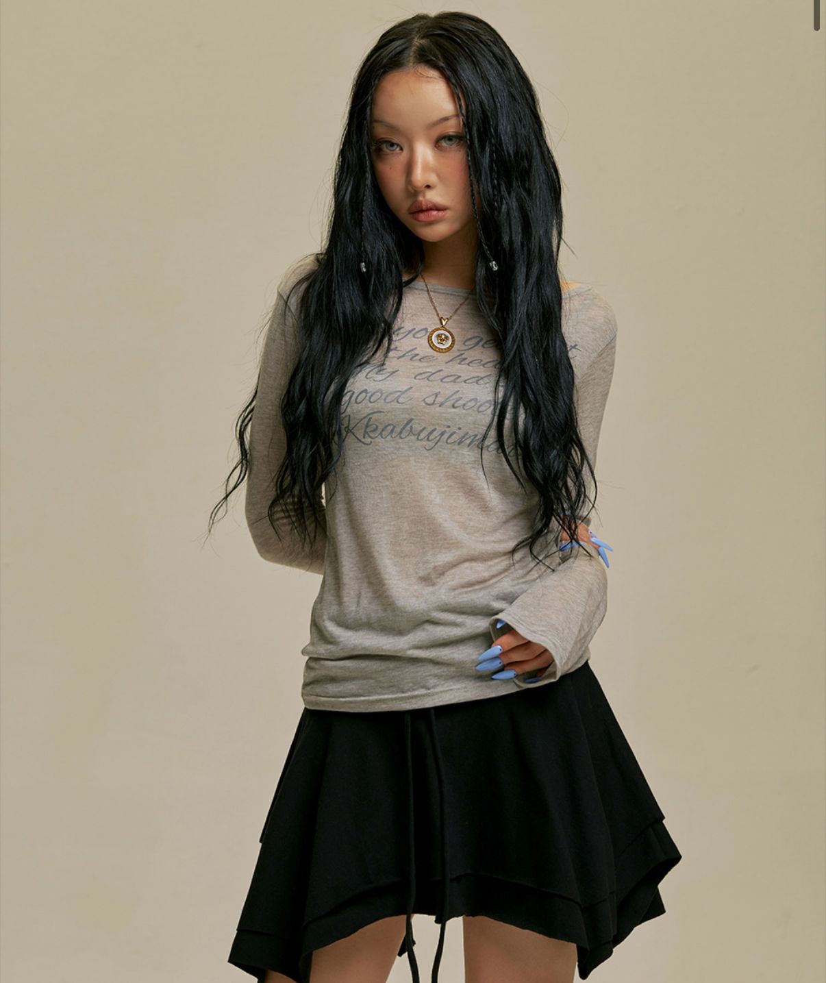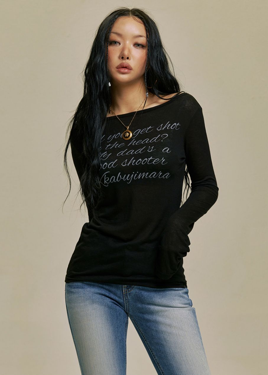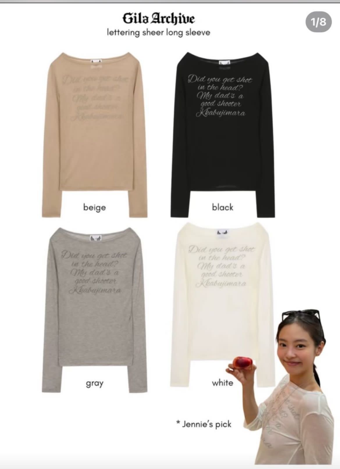 有babe 找的Jennie 同款 Gila archive LETTERING SHEER LONG SLEEVE top sale Free size 顏色:Beige / black /grey/white