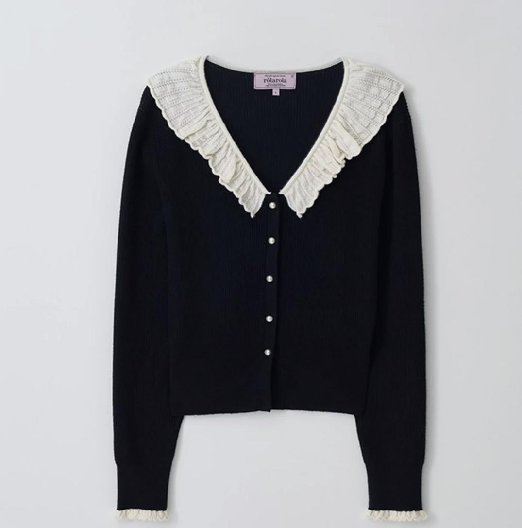🇰🇷Rolarola 11月連線特價款 FRILL COLLAR CARDIGAN BLACK 連線特價款 FREE size 7/11下午1點截單