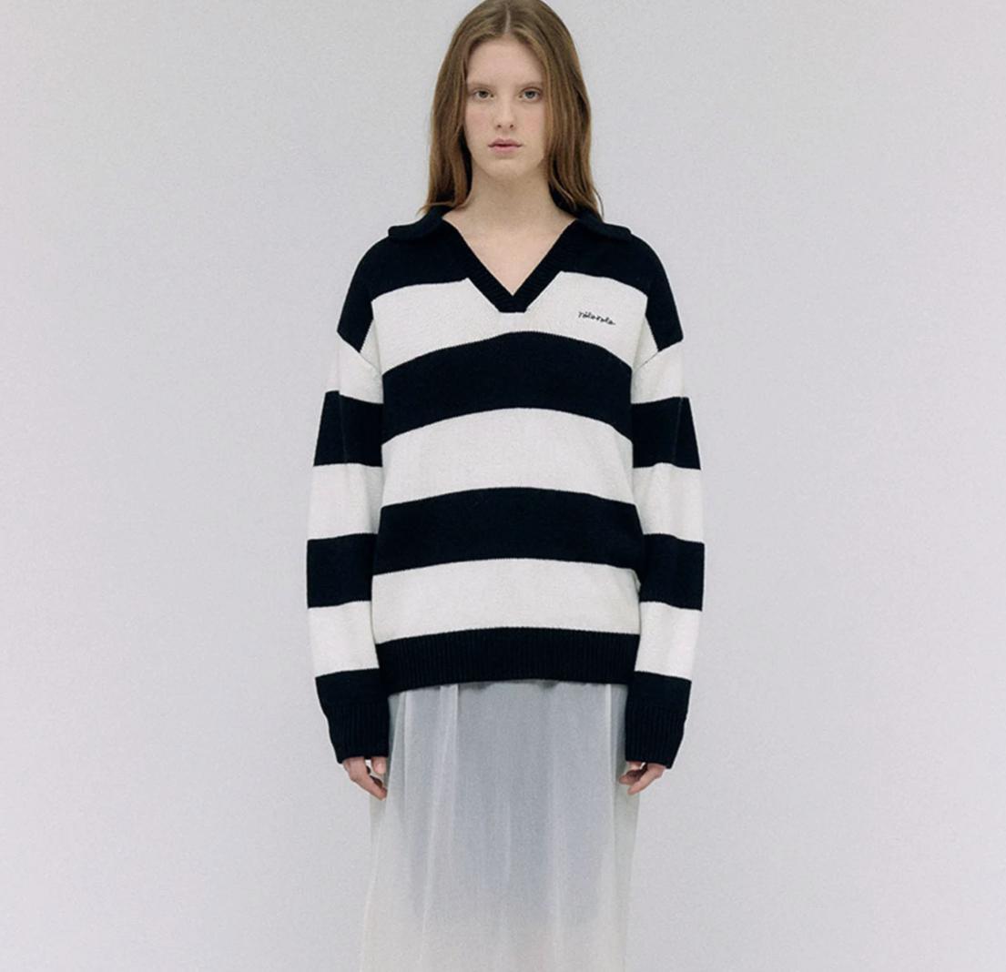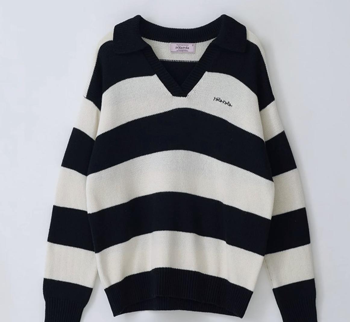 🇰🇷Rolarola 11月連線特價款 Rolarola 羊毛混紡條紋領針織衫 連線特價款Black/ivory