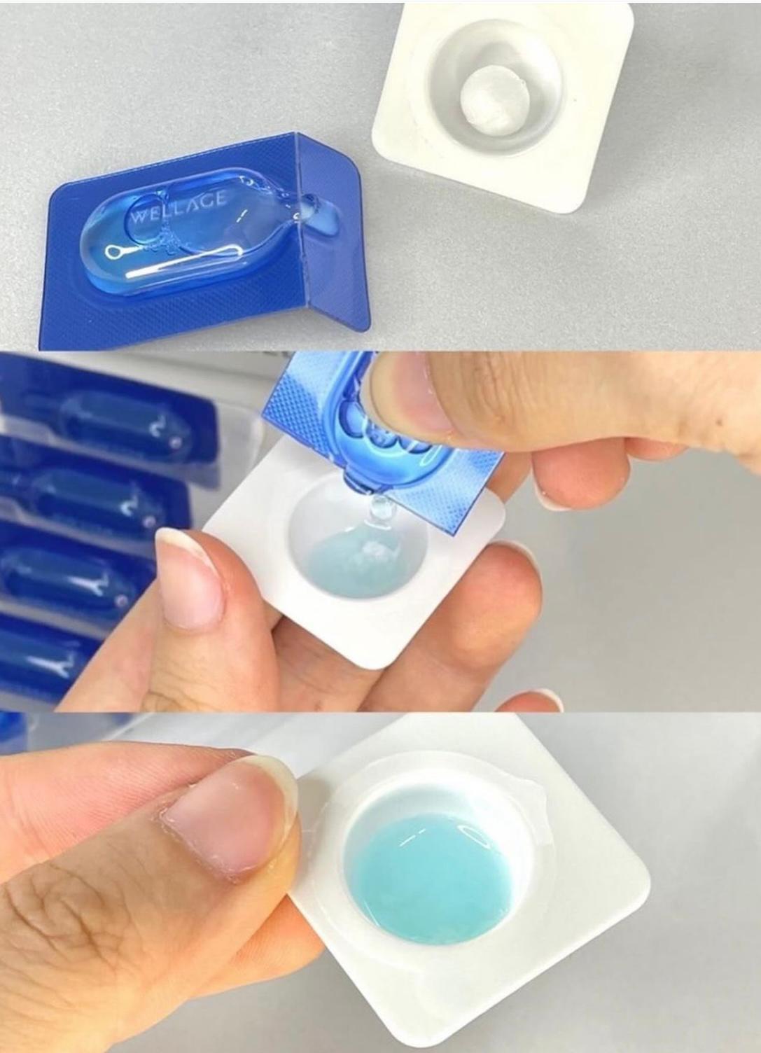 超強補水魔法藥丸心用一次等於敷左10塊mask 號稱相當於微整形的保養品 含有膠原蛋白濃縮球+98.2%濃度的玻尿酸精華原液!! 藍色精華含有8種天然的香草萃取物 8種天然皮膚保濕因子 • 幫助玻尿酸膠囊滲入皮膚內 讓肌膚水分+保濕+滋潤度UP 使用方法很簡單 打開將原液和藥丸混合 塗在臉上第二天早上起來 皮膚是那種喝飽水的感覺很像剛做完皮膚管理的那種感覺!!! 適合所有膚質,敏感肌和孕婦都可用