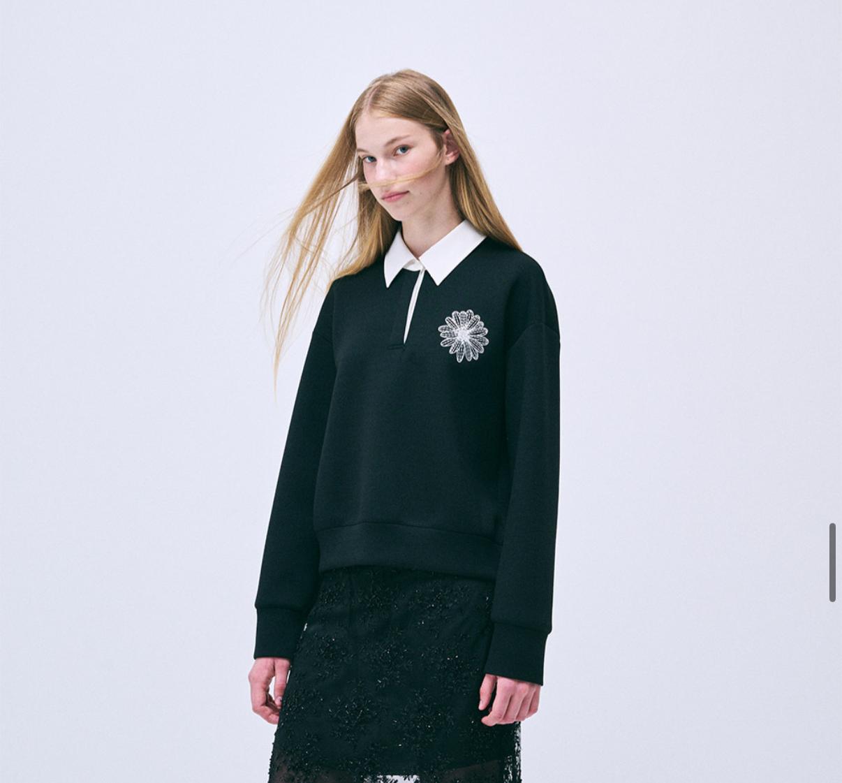 Mardi NEOPRENE CROPPED SHIRT PIQUET FLOWER_BLACK IVORY 限時優惠