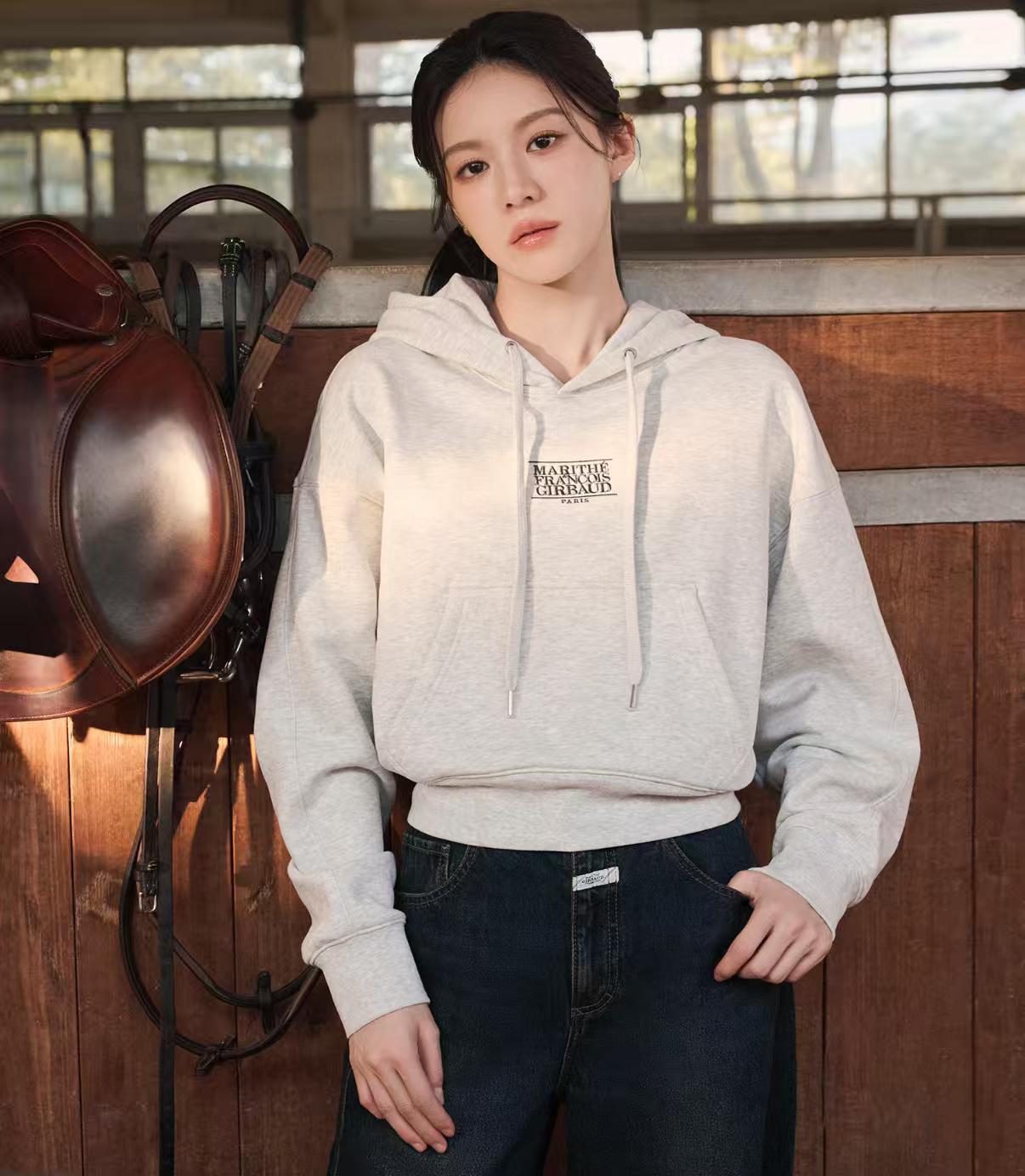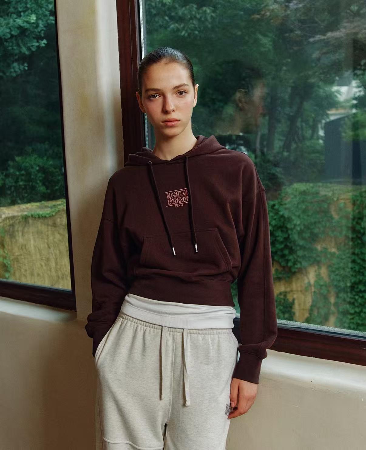 Mfg新款 高允真同款連帽衛衣 W SMALL CLASSIC LOGO CROP HOODIE Size :S M Brown / light grey 韓國連線優惠價