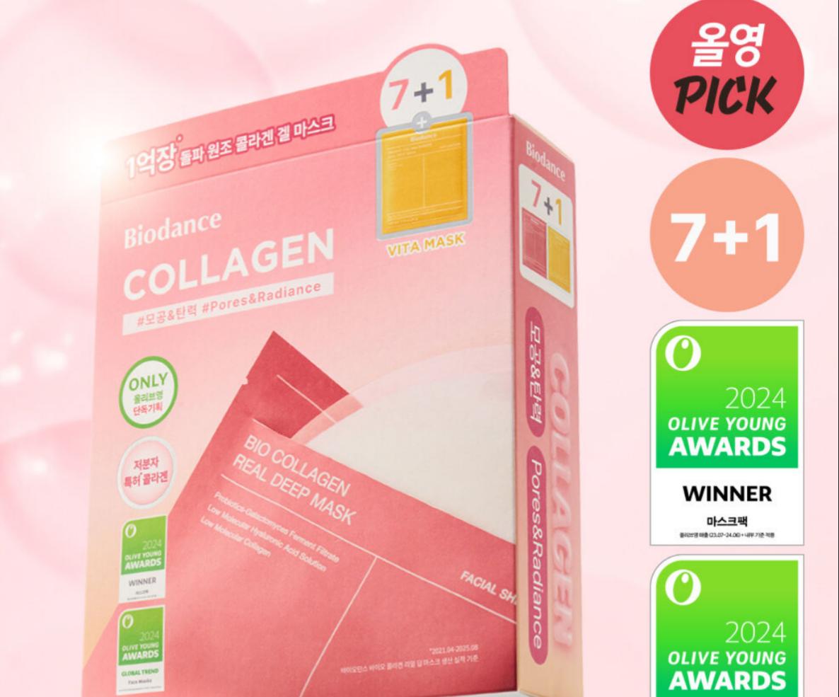 Olive young blackfriday set優惠 Biodance 膠原緊緻系列面膜7pc送維c面膜1pc(預購10-14天)