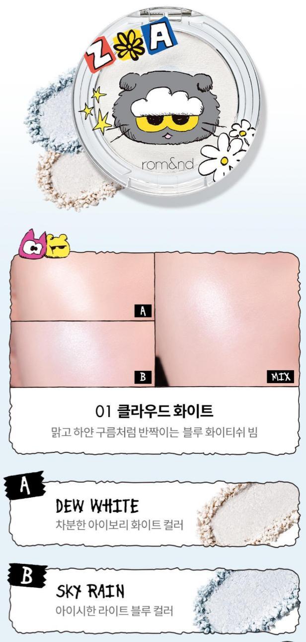 Romand x Zonfriends dual jelly highlighter高光 Colours : 01cloud white 02 paw pink