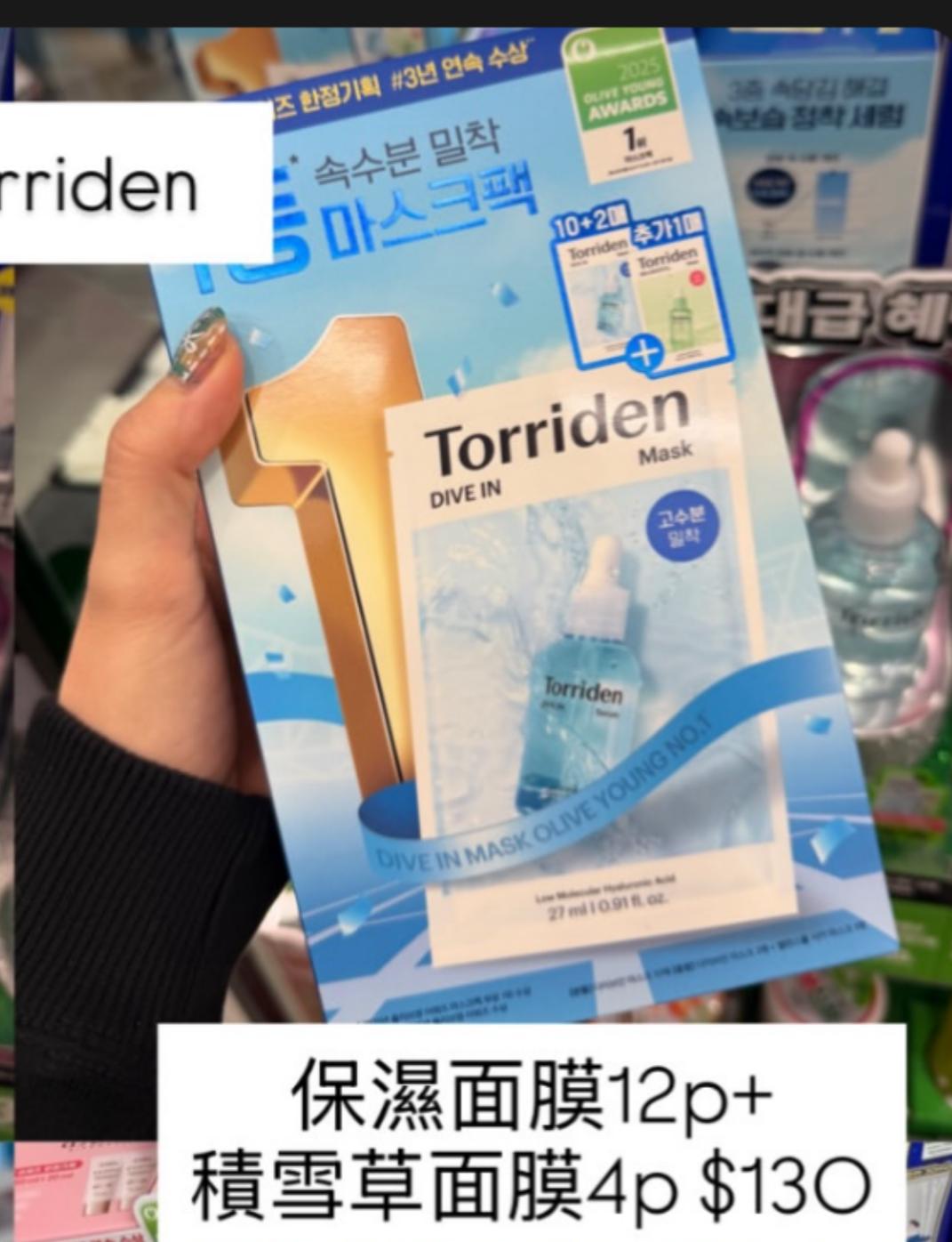 Torriden 保濕面膜12p+ 積雪草面膜4p