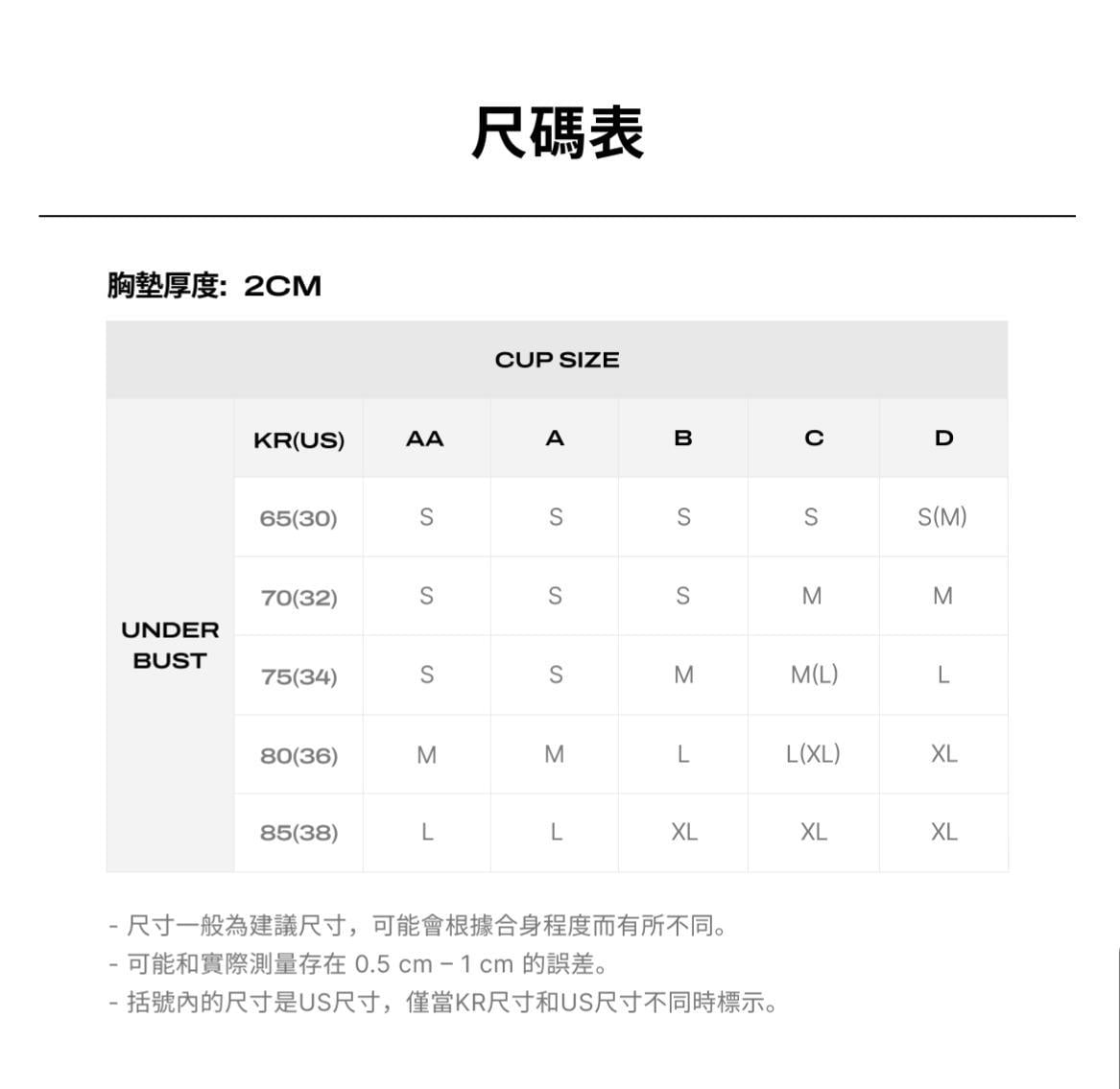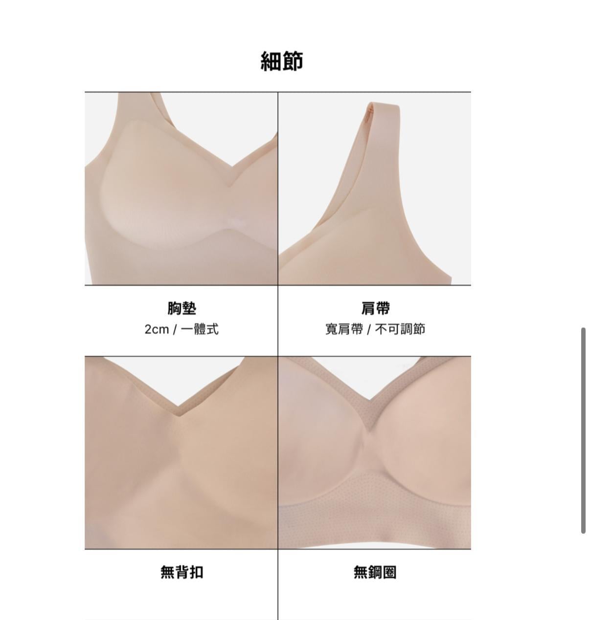 [4 colors] Beige / black /ivory /pale pink 尺寸 S: 總長 29 / 胸寬 30.5 / 下擺 26 (cm) M: 總長 30.5 / 胸寬 32.5 / 下擺 28 (cm) L: 總長 31 / 胸寬 34.5 / 下擺 30 (cm) XL: 總長 32 / 胸寬 36.5 / 下擺 32 (cm) 胸墊厚度:2 (cm) 材質 Polyester / Polyurethane
